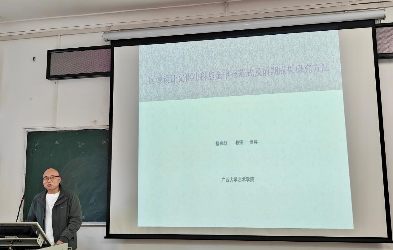 在辅导讲座环节,褚兴彪教授以“区域设计文化社科基金申报范式及前期成果研究方法”为题,从“如何撰写申报书”入手,结合优秀申报书范例进行深入讲解,为师生提供了思路清晰、贴近实际、操作性强的申报撰写范式。