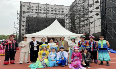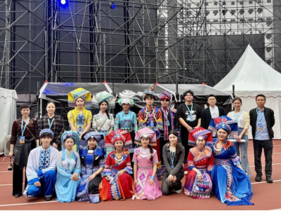 艺院学子与氧化菊校友表演民族走秀《壮韵霓裳》