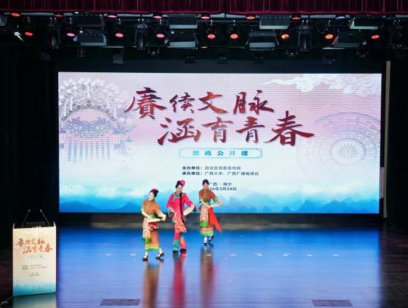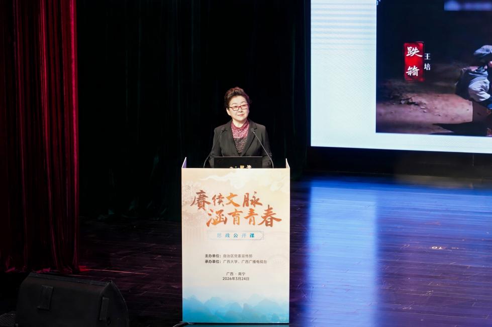 3月24日,“赓续文脉 涵育青春”2026年思政公开课(高校专场)在广西大学火热开讲。自治区党委宣传部二级巡视员农华山,广西大学党委副书记汤志华出席活动,艺术学院400名师生代表参与学习。